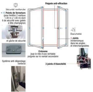 • Renfort intégral en acier galvanisé 4 côtés ouvrant et dormant