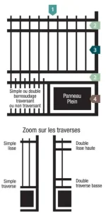 • Traverse basse et traverse intermédiaire : 40 mm x 40 mm ou 50 mm x 50 mm